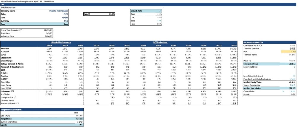 Full Palantir 10-Year DCF Valuation Model (Bear, Base, Bull)